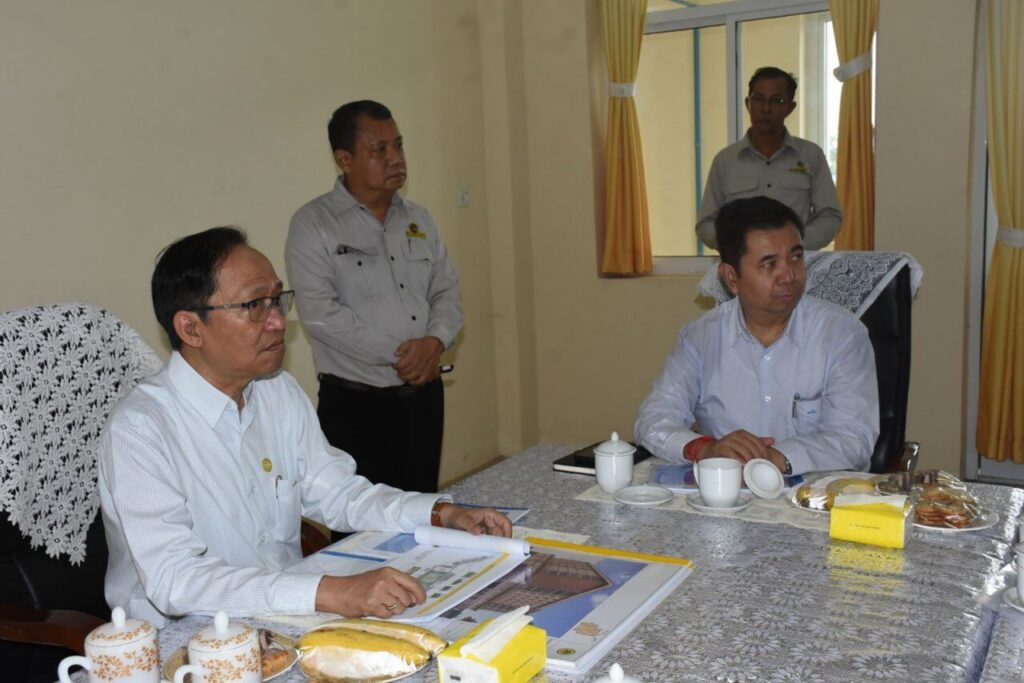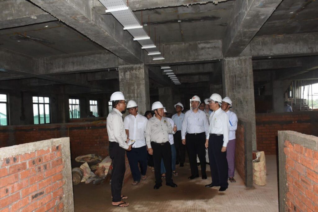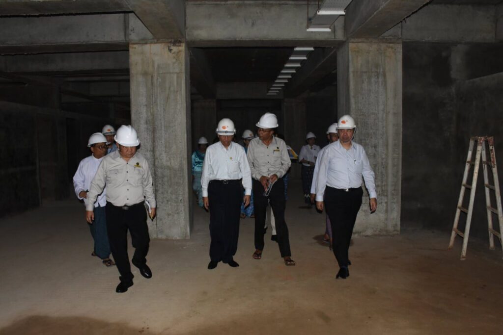 | ရှေးဦးစွာ ပြည်ထောင်စုဝန်ကြီးနှင့်အဖွဲ့သည် ရှစ်ထပ် ကုသဆောင် တည်ဆောက်နေသည့် လုပ်ငန်းခွင်သို့ သွားရောက်ကြည့်ရှုပြီး သတ်မှတ်အချိန်ကာလအမီ ပြီးစီးစေရေး အင်အားပြည့် ကြိုးပမ်း ဆောင်ရွက်ပေးကြရန်၊ အရည်အသွေးပြည့်မီသည့် ပစ္စည်းများအသုံးပြုကြရန်နှင့် လုပ်ငန်းခွင် ဘေး အန္တရာယ်ကင်းရှင်းရေးအတွက် သတိပြုဆောင်ရွက်ရန် တာဝန်ရှိသူများအား မှာကြားခဲ့ပါသည်။ | |