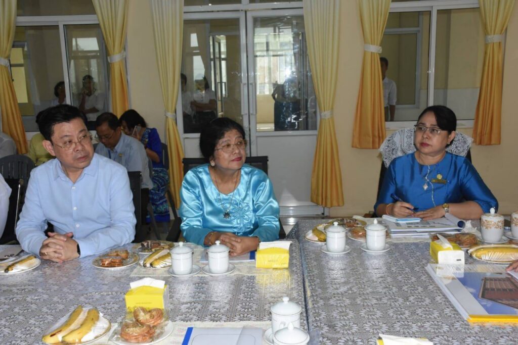 | ဆက်လက်၍ ငါးထပ်ကုသဆောင်ရှိ အစည်းအဝေးခန်း၌ ဆောက်လုပ်ရေးဝန်ကြီးဌာန၊ အဆောက်အဦဦးစီးဌာနမှ အင်ဂျင်နီယာချုပ် ဦးကိုကိုအေးက အမျိုးသားကင်ဆာရောဂါကုသရေးဌာန တည်ဆောက်ရေးလုပ်ငန်းများ ဆောင်ရွက်ပြီးစီးမှုနှင့် ဆေးရုံပတ်ဝန်းကျင်သာယာလှပရေး ဆောင်ရွက်မည့် အစီအစဉ်များကို ရှင်းလင်းတင်ပြခဲ့ရာ ပြည်ထောင်စုဝန်ကြီးက နိုင်ငံတော်အစိုးရအနေဖြင့် အမျိုးသားကင်ဆာရောဂါ ကုသရေးဌာနတည်ဆောက်ရေးအတွက် လိုအပ်သောရန်ပုံငွေများ ခွဲဝေချထားပေးပါကြောင်း၊ ကင်ဆာ ရောဂါဝေဒနာရှင်များအကျိုးငှာ သတ်မှတ်ချိန်အတွင်း စီမံကိန်းပြီးစီးရန် အင်အားပြည့် ဆောင်ရွက် စေလိုပါကြောင်း၊ အမျိုးသားကင်ဆာရောဂါကုသရေးဌာန တည်ဆောက်မှုကို မြန်မာပညာရှင်များဖြင့် သာ ဆောင်ရွက်နိုင်ခြင်းမှာ ဂုဏ်ယူဖွယ်ရာဖြစ်ပါကြောင်း၊ ကုသရေးနှင့် ဆောက်လုပ်ရေးဆိုင်ရာ အရည်အသွေးများ ကောင်းမွန်စေရေးနှင့် ကင်ဆာရောဂါဝေဒနာရှင်များအနေဖြင့် စိတ်ချမ်းသာစွာဖြင့် ကုသမှုခံယူနိုင်ရေးအတွက် ဆေးရုံပတ်ဝန်းကျင်သာယာလှပရေး ဆောင်ရွက်ရာတွင် မြင်နေကျ ဆေးရုံပတ်ဝန်းကျင်ထက် ပိုမိုသာယာလှပသော ပုံစံကို ဆေးပညာရှင်များ၊ အင်ဂျင်နီယာပညာရှင်များ ပူးပေါင်း၍ ညှိနှိုင်းတိုင်ပင် ဆောင်ရွက်ကြရန် ဖြစ်ပါကြောင်း မှာကြားခဲ့ပြီး တက်ရောက်လာကြသည့် ပါမောက္ခ/အထူးကု ဆရာဝန်ကြီးများ၊ အဆောက်အဦဦးစီးဌာနမှ တာဝန်ရှိသူများက အဆောက်အဦ တည်ဆောက်ရေးနှင့် ဆေးရုံပတ်ဝန်းကျင်သာယာလှပရေးအတွက် ညှိနှိုင်းဆွေးနွေးမှုများ ဆောင်ရွက်ခဲ့ကြပါသည်။ | |