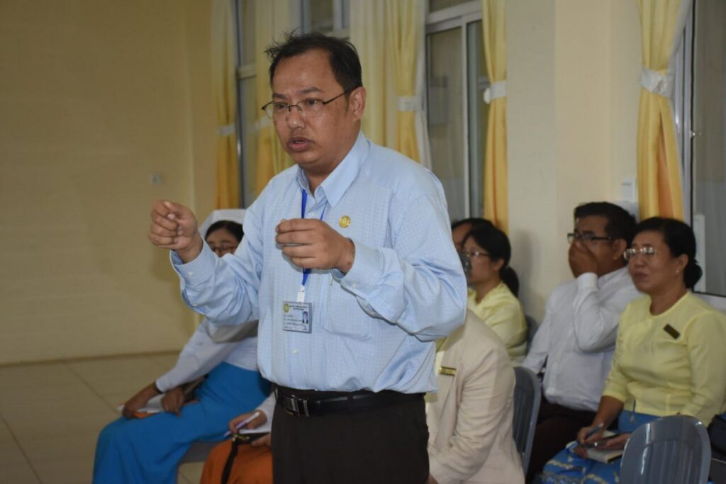 | ထို့နောက် အမျိုးသားကင်ဆာရောဂါကုသရေးဌာန တာဝန်ခံ ဒုတိယညွှန်ကြားရေးမှူးချုပ် ဒေါက်တာကြည်လွင်က အမျိုးသားကင်ဆာရောဂါကုသရေးဌာန၌ ဓာတ်ရောင်ခြည်ကုသမှု ဆောင်ရွက် နေသည့်အခြေအနေများကို တင်ပြပြီး တက်ရောက်လာကြသည့် ပါမောက္ခ/အထူးကုဆရာဝန်ကြီးများက လုပ်ငန်းဆောင်ရွက်မှု အခြေအနေနှင့် လိုအပ်ချက်များ တင်ပြကြရာ ပြည်ထောင်စုဝန်ကြီးနှင့် ကုသရေး ဦးစီးဌာန ညွှန်ကြားရေးမှူးချုပ်တို့က လိုအပ်ချက်များကို ပေါင်းစပ်ညှိနှိုင်းဖြေရှင်းပေးခဲ့ပါသည်။ | |