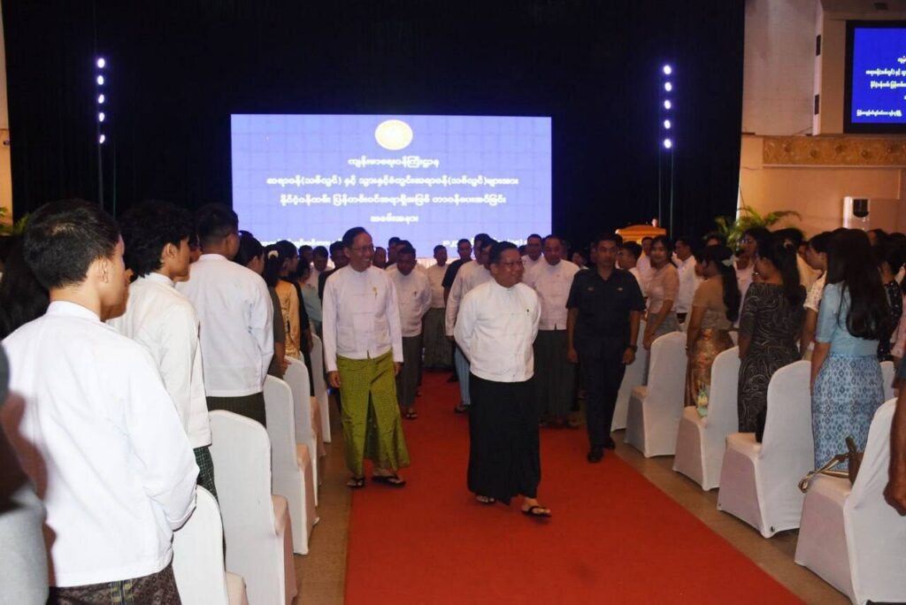 | ယင်းနောက် ကောင်စီတွဲဖက်အတွင်းရေးမှူးက ဆေးတက္ကသိုလ်နှစ်ခုနှင့် သွားဘက်ဆိုင်ရာဆေးတက္ကသိုလ်တို့မှ ကိုယ်စားလှယ်များအား နိုင်ငံ့ဝန်ထမ်းပြန်းတမ်းဝင်အရာရှိ ခန့်အပ်လွှာများပေးအပ်ရာတက္ကသိုလ် တစ်ခုချင်းစီလိုက် ကိုယ်စားလှယ်များက လက်ခံရယူကြသည်။