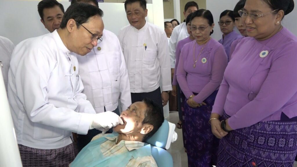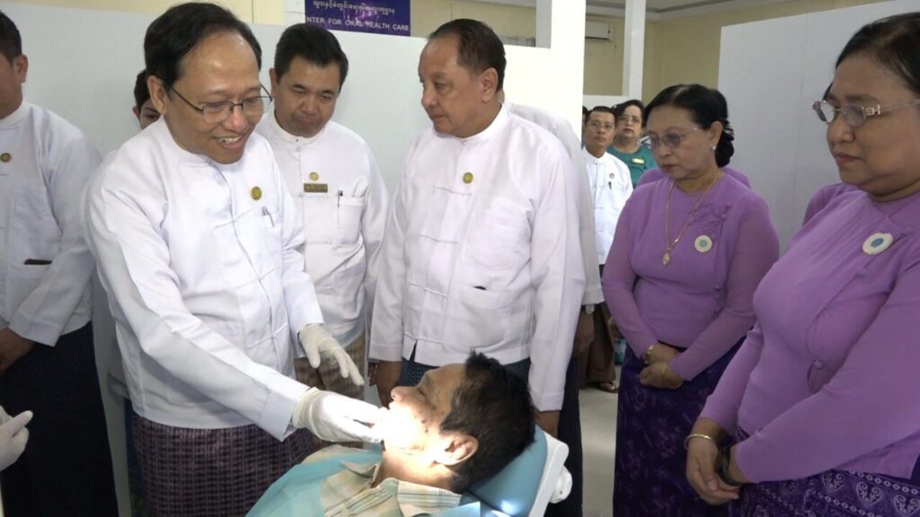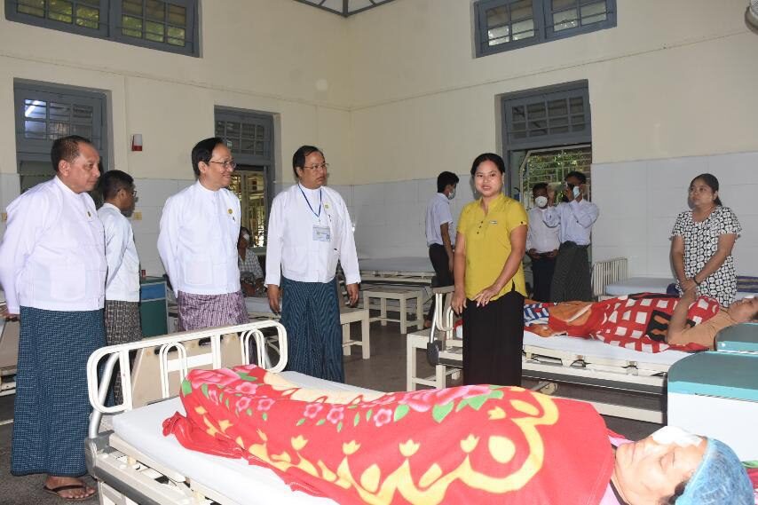 ကျန်းမာရေးဝန်ကြီးဌာန၊ ပြည်ထောင်စုဝန်ကြီး ပါမောက္ခဒေါက်တာသက်ခိုင်ဝင်း တက္ကသိုလ်များဆေးရုံ(ရန်ကုန်)တွင် သွားနှင့်ခံတွင်းလူနာများနှင့် မျက်စိရောဂါလူနာများအား ကုသပေးမှုကို ကြည့်ရှုအားပေး၍ ရန်ကုန်အထွေထွေရောဂါကုဆေးရုံသစ်ကြီး၏ လေးထပ်ကုသဆောင်သစ်ကို ကြည့်ရှုစစ်ဆေး