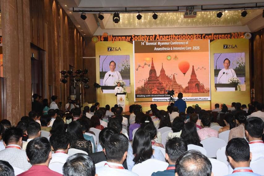ဆက်လက်၍ World Federation of Societies of Anaesthesiologists (WFSA) President Dr. Carolina Haylock Loor မှ ပေးပို့သော Welcome Message Video ကို ပြသပြီး အမျိုးသားယဉ်ကျေးမှု နှင့်အနုပညာတက္ကသိုလ်မှ ပုဂံအကဖြင့် ကပြဖျော်ဖြေကာ မြန်မာနိုင်ငံမေ့ဆေး ပညာရှင်အဖွဲ့ ဥက္ကဋ္ဌ ဆေးတက္ကသိုလ်(၁)ရန်ကုန် ပါမောက္ခ/ဌာနမှူး(မေ့ဆေး) ပါမောက္ခဒေါက်တာမူမူနိုင်က ညီလာခံကြိုဆို နှုတ်ခွန်းဆက်စကားပြောကြားခဲ့ပါသည်။ ထို့နောက် ကျန်းမာရေးဝန်ကြီးဌာန၊ ပြည်ထောင်စုဝန်ကြီး ပါမောက္ခဒေါက်တာသက်ခိုင်ဝင်း၊ ရန်ကုန်တိုင်းဒေသကြီးအစိုးရအဖွဲ့ ဝန်ကြီးချုပ် ဦးစိုးသိန်း၊ ပါမောက္ခဒေါက်တာမူမူနိုင်၊ မြန်မာနိုင်ငံ ဆေးကောင်စီ ဥက္ကဋ္ဌ ဒေါက်တာမျိုးခင်နှင့် မြန်မာနိုင်ငံဆရာဝန်အသင်း ဥက္ကဋ္ဌ ပါမောက္ခဒေါက်တာ အေးအောင်တို့က ညီလာခံကို ဖဲကြိုးဖြတ်ဖွင့်လှစ်ပေးကြပြီး ခင်းကျင်းပြသထားသည့် ပညာရပ်ဆိုင်ရာ ပိုစတာများနှင့် ဆေးနှင့်ဆေးပစ္စည်းပြခန်းများကို လှည့်လှည်ကြည့်ရှုအားပေးခဲ့ကြပါသည်။ အဆိုပါညီလာခံကို မေလ (၁၇)ရက်နေ့မှ(၁၈)ရက်နေ့အထိ မြန်မာနိုင်ငံမှ ဆေးပညာရှင်များ အပြင် ထိုင်းနိုင်ငံ၊ အင်ဒိုနီးရှားနိုင်ငံ၊ မလေးရှားနိုင်ငံ၊ အိန္ဒိယနိုင်ငံ၊ ဘရူနိုင်းနိုင်ငံတို့မှ ဘာသာရပ်ဆိုင်ရာ ကျွမ်းကျင်ပညာရှင် (၁၀)ဦးတို့က ဆေးပညာရပ်ဆိုင်ရာဗဟုသုတမျှဝေခြင်း၊ အတွေ့အကြုံဖလှယ်ခြင်းတို့ ဆောင်ရွက်သွားမည်ဖြစ်ပြီး ပညာရပ်ဆိုင်ရာ ပိုစတာ (၁၄)ခုကို ပြသထားပြီး ညီလာခံ အကြိုလှုပ်ရှားမှု အဖြစ် အလုပ်ရုံဆွေးနွေးပွဲ (၃)ခုကိုလည်း မေလ (၁၆)ရက်နေ့က ဆောင်ရွက်ခဲ့ကြကြောင်း သိရှိရပါသည်။ ထို့နောက် ပြည်ထောင်စုဝန်ကြီးနှင့်တာဝန်ရှိသူများသည် မြန်မာနိုင်ငံဆေးကောင်စီ၊ အစည်းအဝေးခန်းမ၌ ကျင်းပပြုလုပ်သော မြန်မာနိုင်ငံဆေးကောင်စီ အလုပ်အမှုဆောင် အဖွဲ့ အစည်းအဝေး(၂/၂၀၂၅)သို့ တက်ရောက်ပြီး အမှာစကားပြောကြားခဲ့ရာ မြန်မာနိုင်ငံဆေးကောင်စီ အနေဖြင့် မလိုအပ်ဘဲဆရာဝန်များပြုန်းတီးမှု မရှိစေရေး ထိန်းကျောင်းပေးစေရေး၊ ဆရာဝန်များ၏ ကျင့်ဝတ်ပိုင်း ဆိုင်ရာ ထိန်းကျောင်းရေး၊ နိုင်ငံတကာမှရရှိခဲ့သော ဆေးနှင့်ဆေးနှီးနွယ်ဆိုင်ရာဘွဲ့များကို အသိအမှတ်ပြုရေးကိစ္စရပ်များ၊ ပုဂ္ဂလိကကျန်းမာရေးဝန်ဆောင်မှုလုပ်ငန်းများအနေဖြင့် ပြည်သူလူထုကို အရည်သွေးပြည့်ဝသည့် ကျန်းမာရေးဝန်ဆောင်မှုပေးအပ်နိုင်ရေး မြန်မာနိုင်ငံဆေး ကောင်စီအနေဖြင့် ဆက်လက်ထိန်းကျောင်းသွားရမည့်ကိစ္စများ၊ ဆရာဝန်များ ဆေးကုသခွင့်လိုင်စင်ထုတ်ပေးခြင်း၊ သက်တမ်းတိုးခြင်း၊ အထူးကုဆေးကုသမှုလိုင်စင် ထုတ်ပေးခြင်းတို့ကို သက်ဆိုင်ရာဥပဒေ၊ နည်းဥပဒေ၊ လုပ်ထုံးလုပ်နည်း များနှင့်အညီ စနစ်တကျ ဆက်လက်ဆောင်ရွက်နိုင်ရေးနှင့် ချမှတ်ထားသော စည်းမျဉ်းများအတိုင်း ဆောင်ရွက်စ