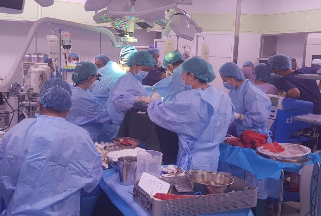 အဆိုပါ အသည်းအစားထိုးခွဲစိတ်ကုသမှုကို ပြည်သူဆေးရုံကြီးများတွင် အသည်းအစားထိုးခွဲစိတ်မှု အောင်မြင်စွာပြန်လည်ဆောင်ရွက်နိုင်ရေး လုပ်ငန်းအဖွဲ့ခေါင်းဆောင် ဆေးသုတေသန ဦးစီးဌာန ညွှန်ကြားရေးမှူးချုပ်၊ ဒေါက်တာဇော်သန်းထွန်း ဦးဆောင်သောအဖွဲ့၊ ပါမောက္ခ၊ဌာနမှူး ပါမောက္ခဒေါက်တာစိုင်းအောင်ညွန့်ဦး ဦးဆောင်သော အသည်းခွဲစိတ်ကုသမှု ဆိုင်ရာလုပ်ငန်းအဖွဲ့နှင့် တောင်ကိုးရီးယားနိုင်ငံ၊ Seoul National University Hospital မှ Professor Kwang Woong Lee ဦးဆောင်သောအဖွဲ့၊ ပါမောက္ခ၊ ဌာနမှူး ပါမောက္ခ ဒေါက်တာဝင်းဝင်းဆွေ ဦးဆောင်သော အသည်းဆေးကုသမှုဆိုင်ရာ လုပ်ငန်းအဖွဲ့၊ ပါမောက္ခ၊ ဌာနမှူး ပါမောက္ခဒေါက်တာမူမူနိုင် ဦးဆောင်သော မေ့ဆေးဆိုင်ရာလုပ်ငန်းအဖွဲ့၊ ပါမောက္ခ၊ ဌာနမှူး ပါမောက္ခဒေါက်တာဝင်းဝင်းကျော် ဦးဆောင်သော နှလုံးနှင့် သွေးကြောခွဲစိတ်မှုဆိုင်ရာလုပ်ငန်းအဖွဲ့၊ ဒုတိယညွှန်ကြားရေးမှူးချုပ် (ဓာတ်ခွဲ) ဒေါက်တာဆွေဆက် ဦးဆောင်သော ရောဂါရှာဖွေရေးဆိုင်ရာလုပ်ငန်းအဖွဲ့၊ ပါမောက္ခ၊ ဌာနမှူး ပါမောက္ခဒေါက်တာ အောင်ချိုထွန်း ဦးဆောင်သော ဓာတ်မှန်ပညာဆိုင်ရာလုပ်ငန်းအဖွဲ့၊ ဒုတိယညွှန်ကြားရေးမှူးချုပ်(ငြိမ်း) ဒေါက်တာသီတာအောင် ဦးဆောင်သော သွေးနှင့်သွေးပစ္စည်းဆိုင်ရာ အထောက်အကူပြုလုပ်ငန်းအဖွဲ့၊ ပါမောက္ခ/ဌာနမှူး (အသည်းခွဲစိတ်) (ငြိမ်း) ပါမောက္ခဒေါက်တာတင်တင်မာ၊ ပါမောက္ခ၊ ဌာနမှူး (မေ့ဆေး) (ငြိမ်း) ပါမောက္ခဒေါက်တာကြည်ကြည်စန်း၊ အထူးကုဆေးရုံကြီး (ခုတင်-၅၀၀)-ရန်ကုန်မြို့မှ ဆေးရုံအုပ်ကြီး ဒေါက်တာအောင်လင်းအေး၊ တွဲဖက်ပါမောက္ခ (မေ့ဆေး) ဒေါက်တာမောင်မောင်ဆွေ၊ ပါမောက္ခဒေါက်တာ သဇင်သန်း (ဓာတ်မှန်)၊ ဒေါက်တာယဉ်မူယာ၊ အထူးကုဆရာဝန်ကြီး(ဓာတ်ခွဲ)နှင့် ဆရာဝန်များ၊ သူနာပြုအုပ်များဖြစ်သော ဒေါ်စန်းစန်းရင်နှင့် ဒေါ်ပိုပိုအောင်၊ ကျွမ်းကျင်သူနာပြု ဆရာမကြီးများဖြစ်သော ဒေါ်ကေသီနွယ်နှင့် ဒေါ်ယုယုလင်း ဦးဆောင်သော သူနာပြုများအဖွဲ့၊ ကျွမ်းကျင်ဝန်ထမ်းများနှင့် အထောက်အကူပြု ဝန်ထမ်း များအားလုံး ပူးပေါင်းဆောင်ရွက်ခဲ့ကြခြင်း ဖြစ်ပါသည်။ |