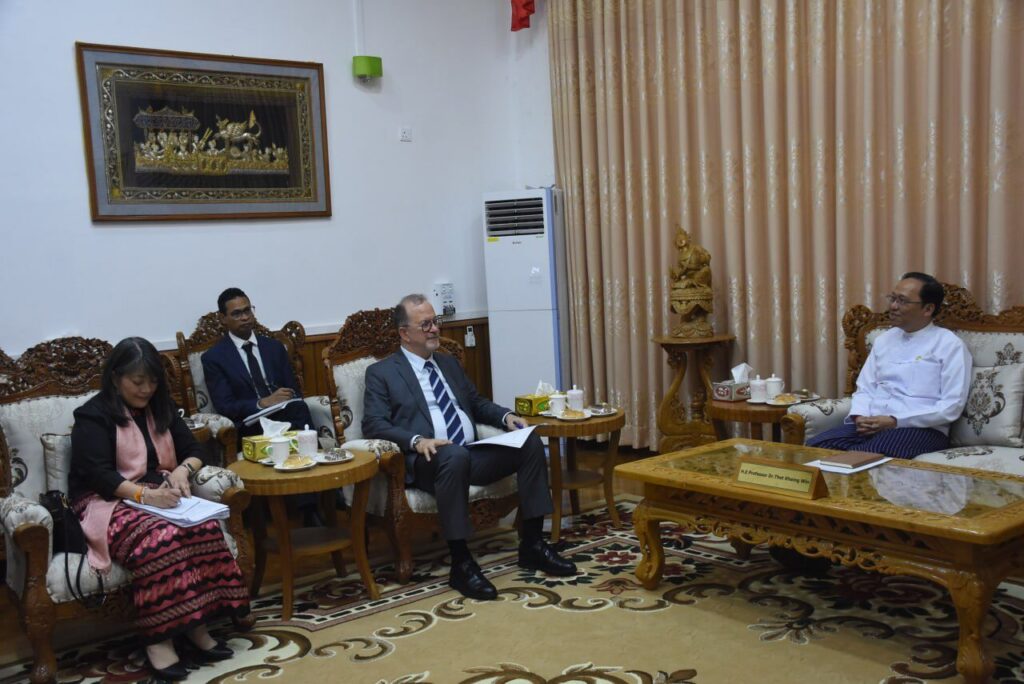 ကျန်းမာရေးဝန်ကြီးဌာန၊ ပြည်ထောင်စုဝန်ကြီး ဒေါက်တာသက်ခိုင်ဝင်းအား ကုလသမဂ္ဂကလေးများရန်ပုံငွေအဖွဲ့ (UNICEF) ရုံးချုပ်မှ ဒုတိယအမှုဆောင်ဒါရိုက်တာ(လူသားချင်းစာနာထောက်ထားမှုဆိုင်ရာဆောင်ရွက်မှုနှင့် ထောက်ပံ့ရေးလုပ်ငန်းများဆိုင်ရာ)ဖြစ်သူ Mr. Edward Chaker Chaiban နှင့်အဖွဲ့မှ လာရောက်ဂါရဝပြုတွေ့ဆုံ