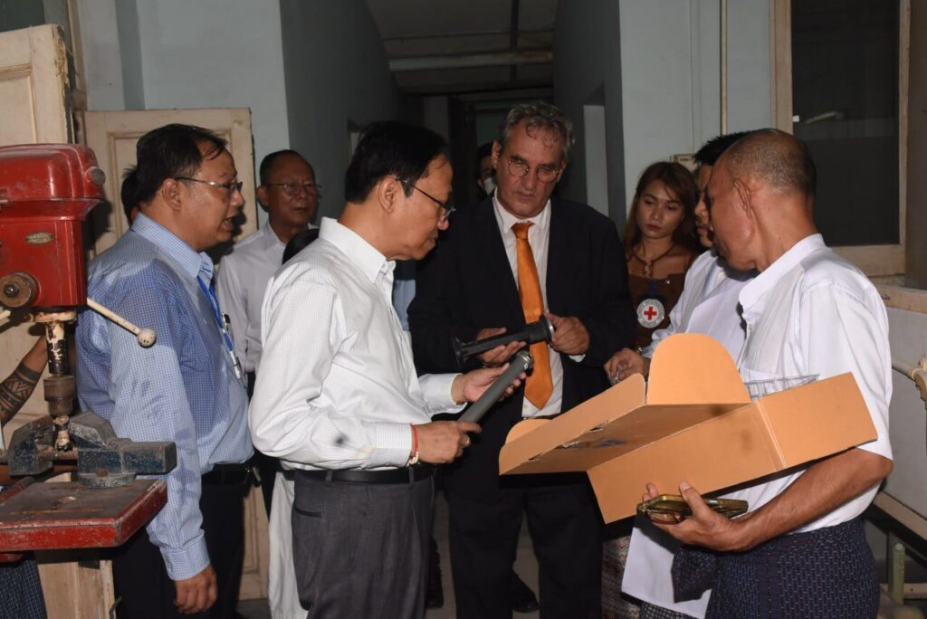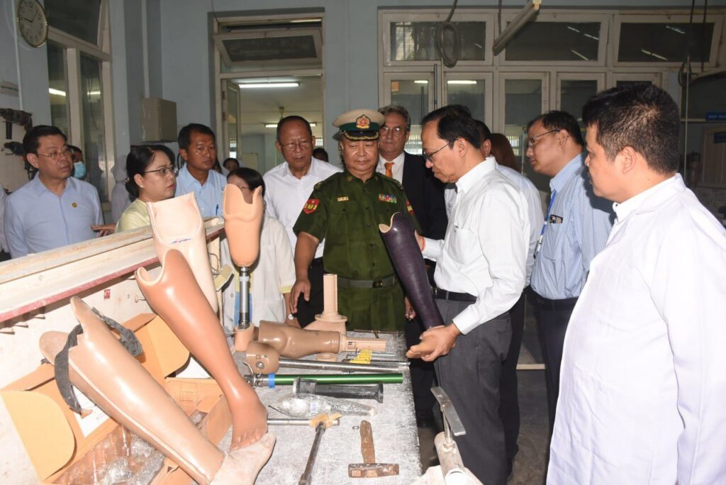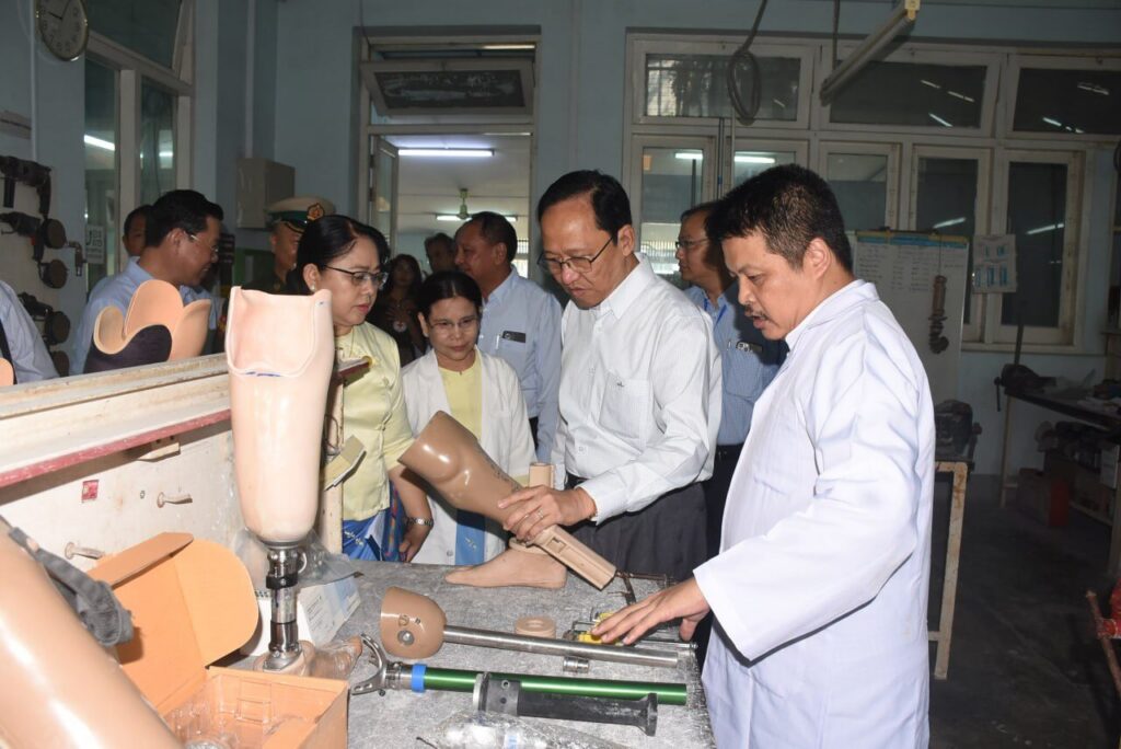 ကျန်းမာရေးဝန်ကြီးဌာန ပြည်ထောင်စုဝန်ကြီး ပါမောက္ခဒေါက်တာသက်ခိုင်ဝင်း အမျိုးသားပြန်လည် သန်စွမ်းရေးဆေးရုံ ခြေတုလက်တုနှင့် အားပြုကိရိယာအလုပ်ရုံသို့ သွားရောက်