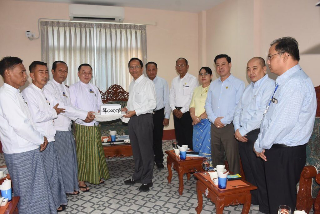 | ဆက်လက်၍ပြည်ထောင်စုဝန်ကြီးနှင့်အဖွဲ့သည် ရန်ကုန်မြို့ ဗဟိုကာကွယ်ဆေးသိုလှောင် အအေးခန်းတွင်ကာကွယ်ဆေးများ သိုလှောင် သိမ်းဆည်းထားမှုအခြေအနေများကိုကြည့်ရှုစစ်ဆေးပြီး လိုအပ်သည်များ မှာကြားကာဧည့်ခန်းမ၌ငလျင်ဘေးဒဏ်သင့်လူနာများနှင့် ကျန်းမာရေးဝန်ထမ်းများအတွက် ညီညွတ်ရေး နှင့် ဖွံ့ဖြိုးတိုးတက်ရေးပါတီက လှူဒါန်းသော အလှူငွေကျပ် သိန်း(၁၀၀)ကို ပါတီဥက္ကဋ္ဌ ဒေါက်တာခင်မောင်ဦးနှင့်အဖွဲ့က ပေးအပ်ခြင်းကိုလည်းကောင်း၊ မြန်မာနိုင်ငံဆီးချိုသွေးချို နှင့် ဟော်မုန်းရောဂါအသင်းနှင့် ဆေးတက္ကသိုလ်(၂)၊ ရန်ကုန် သင်ကြားရေးဌာနများနှင့် ကျောင်းသား ကျောင်းသူများက ငလျင်ဘေးဒဏ်ခံစားခဲ့ရသော လူနာများအား ကျန်းမာရေးစောင့်ရှောက်မှု ပေးနေသည့် ကျန်းမာရေးဝန်ထမ်းများနှင့် ငလျင်ဘေးဒဏ်သင့်လူနာများ ကျန်းမာရေးစောင့်ရှောက်မှုတို့ အတွက် လှူဒါန်းသော အလှူငွေကျပ် သိန်း(၁၀၀)စီကိုလည်းကောင်း လက်ခံ၍ ကျေးဇူးတင်စကား ပြောကြားခဲ့ပါသည်။ | |