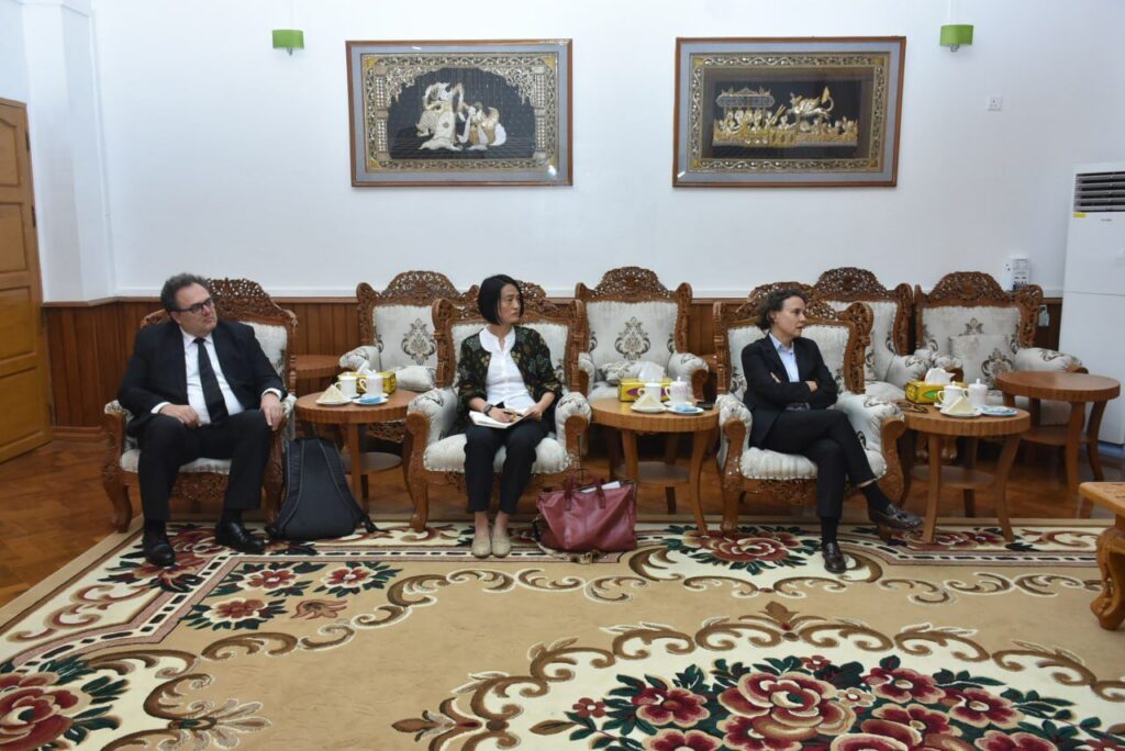 ကျန်းမာရေးဝန်ကြီးဌာန၊ ပြည်ထောင်စုဝန်ကြီး ဒေါက်တာသက်ခိုင်ဝင်းအား ဂျီနီဗာမြို့အခြေစိုက် ကမ္ဘာလုံးဆိုင်ရာရန်ပုံငွေအဖွဲ့ (The Global Fund) ရုံးချုပ်မှ Senior Fund Portfolio Manager Ms. Maria Iazskun Gaviria Ayucar ဦးဆောင်သည့်ကိုယ်စားလှယ်အဖွဲ့မှ လာရောက်ဂါရဝပြုတွေ့ဆုံ