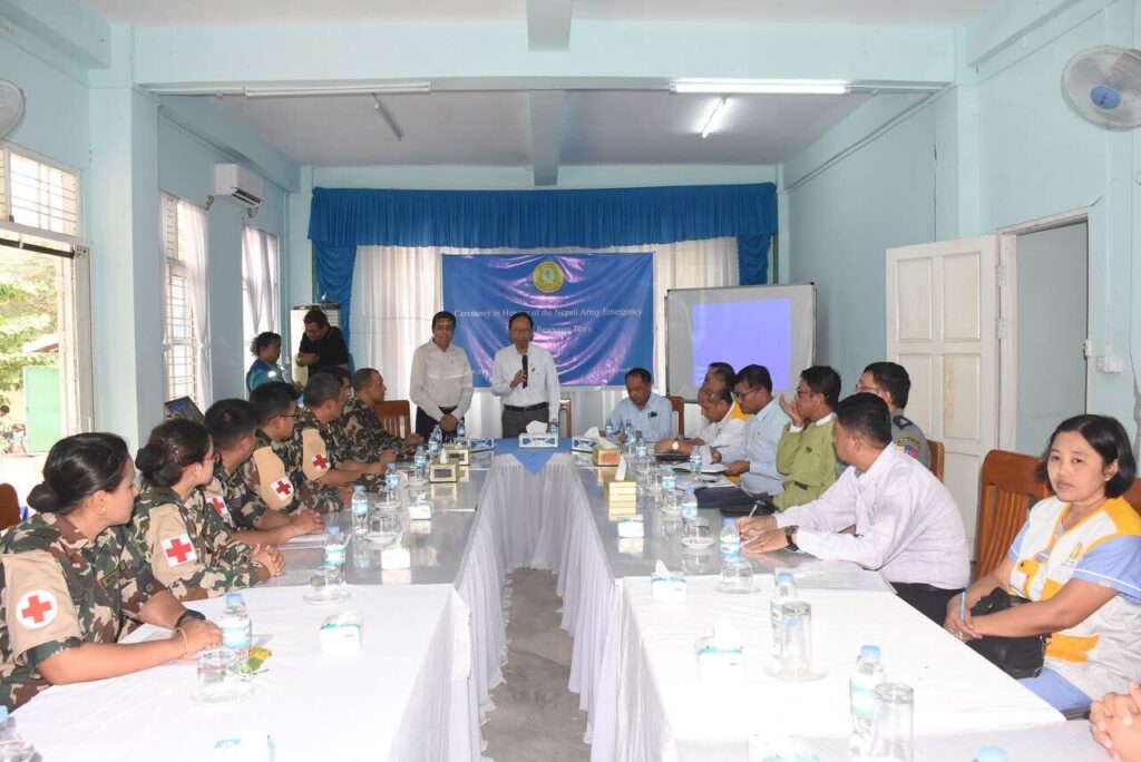 ကျန်းမာရေးဝန်ကြီးဌာန၊ ပြည်ထောင်စုဝန်ကြီး ပါမောက္ခ ဒေါက်တာသက်ခိုင်ဝင်း နီပေါတပ်မတော်အရေးပေါ်ဆေးကုသရေးအဖွဲ့အား ဂုဏ်ပြုနှုတ်ဆက်