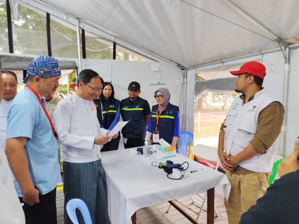 | ဆက်လက်၍ ပြည်ထောင်စုဝန်ကြီးနှင့် တာဝန်ရှိသူများသည် နေပြည်တော်ရှိ သူနာပြုသင်တန်းကျောင်းသို့သွားရောက်၍ ယာယီစခန်းအတွင်း နေထိုင်လျက်ရှိကြသော ကျန်းမာရေးဝန်ထမ်းများ၏ အခြေအနေနှင့် သင်တန်းကျောင်း၏ ငလျင်ဒဏ်ခံခဲ့ရမှု အခြေအနေများကိုလှည့်လည်ကြည့်ရှုစစ်ဆေးပြီး ဝန်ထမ်းများအား အားပေးစကားပြောကြားကာ လိုအပ်ချက်များကို သက်ဆိုင်ရာတာဝန်ရှိသူများနှင့် ညှိနှိုင်းပေါင်းစပ် ဆောင်ရွက်ပေးပါသည်။