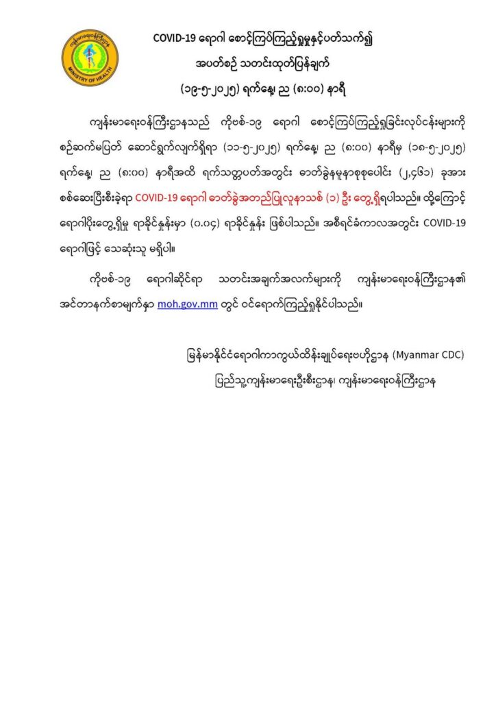 COVID-19 ရောဂါ စောင့်ကြပ်ကြည့်ရှုမှုနှင့်ပတ်သက်၍ အပတ်စဉ်သတင်းထုတ်ပြန်ချက် (၁၉-၅-၂၀၂၅) ရက်နေ့၊ ည (၈:၀၀) နာရီ