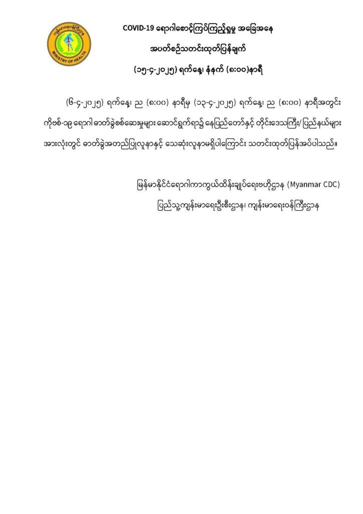 COVID-19 ရောဂါ စောင့်ကြပ်ကြည့်ရှုမှုနှင့်ပတ်သက်၍ အပတ်စဉ်သတင်းထုတ်ပြန်ချက် (၁၄-၄-၂၀၂၅) ရက်နေ့၊ ည (၈:၀၀) နာရီ