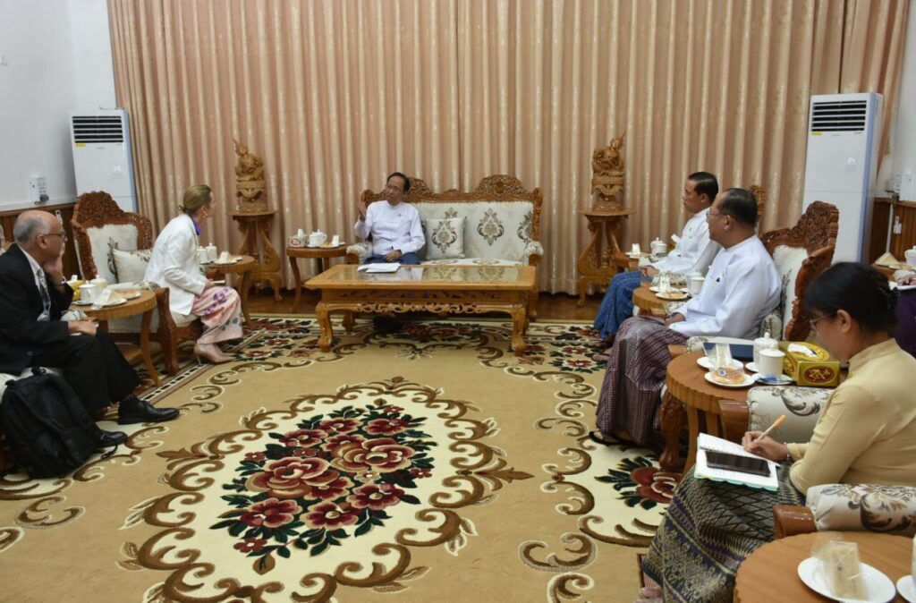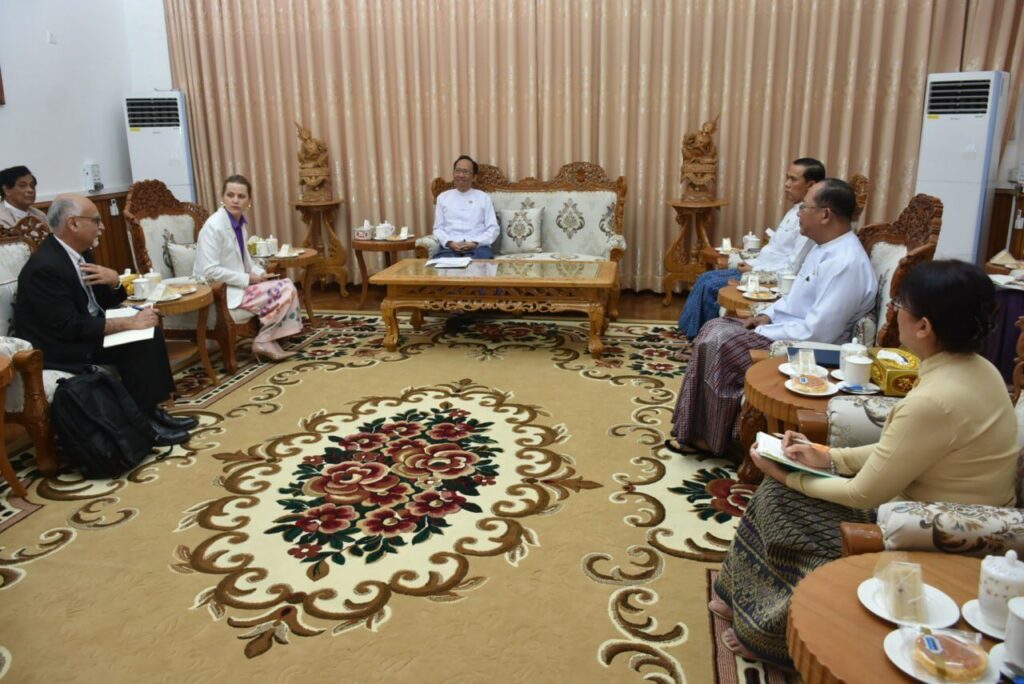 ကျန်းမာရေးဝန်ကြီးဌာန၊ ပြည်ထောင်စုဝန်ကြီး ဒေါက်တာသက်ခိုင်ဝင်း ကုသလမဂ္ဂစီမံကိန်း ဝန်ဆောင်မှုရုံး(UNITED NATIONS OFFICE FOR PROJECT SERVICES-UNOPS)မှ COUNTRY DIRECTOR ဖြစ်သူ MS. SARA AUSTIN NETZER ဉီးဆောင်သည့် ကိုယ်စားလှယ်အဖွဲ့အား လက်ခံတွေ့ဆုံ