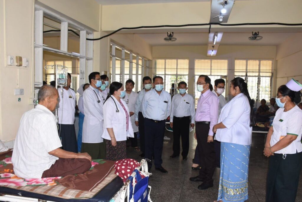 ကျန်းမာရေးဝန်ကြီးဌာန ပြည်ထောင်စုဝန်ကြီး ပါမောက္ခဒေါက်တာသက်ခိုင်ဝင်း မှော်ဘီမြို့နယ် မြောင်းတကာတိုက်နယ်ဆေးရုံ၊ မြောင်းတကာကျေးလက်ကျန်းမာရေးဌာနခွဲနှင့် အင်းစိန်ပြည်သူ့ဆေးရုံကြီးသို့ သွားရောက်