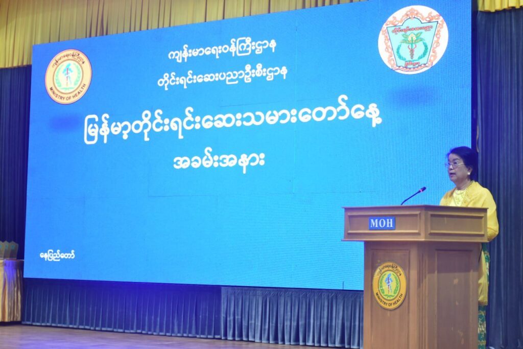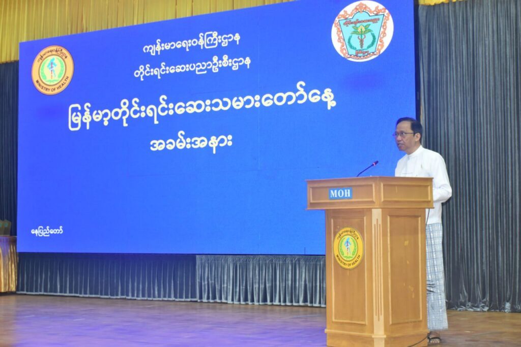| ထို့နောက်သဘာပတိက အဖွင့်အမှာစကားပြောကြားရာတွင် မြန်မာ့တိုင်းရင်းဆေးသမားတော်နေ့ကျင်းပခြင်းရည်ရွယ်ချက်မှာ “ပညာရှင် ရှေးဆေးသမား၊ ကျေးဇူးတရား မမေ့ငြား” ဆိုသည့် ဆောင်ပုဒ်အတိုင်း ပြည်သူလူထု၏ ကျန်းမာရေးကို တိုင်းရင်းဆေးပညာဖြင့် စောင့်ရှောက်ခဲ့ကြသော သမားတော်ကြီးများ၏ ဂုဏ်ကျေးဇူးများ၊ ခက်ခဲနက်နဲသော မြန်မာ့တိုင်းရင်းဆေးပညာရပ်၏ ဂုဏ်ကျေးဇူးများကို လေးစားဂုဏ်ပြုသောအားဖြင့် တပေါင်းလပြည့်နေ့အား မြန်မာ့တိုင်းရင်းဆေးသမားတော်နေ့အဖြစ် သတ်မှတ်ခဲ့ပါကြောင်း၊ တပေါင်းလသည် ဆောင်းဥတုအကုန် နွေဥတုအစဖြစ်သောကြောင့် ရာသီဥတုမှာ မပူလွန်းမအေးလွန်းဘဲ ညီညွတ်မျှတသော အချိန်ကာလဖြစ်ပါကြောင်း၊ နေ၊ လ၊ ကြယ်တာရာ၊ (၂၇)လုံးသောနက္ခတ်နှင့် ဂြိုဟ်ကြီး(၉)လုံးတို့ တစ်ပေါင်းတစ်စည်းတည်း ပြည့်စုံစွာထွက်ပေါ်သော အချိန်အခါလည်းဖြစ်ပါကြောင်း၊ ရွက်ဟောင်းကြွေ၍ တစ်ဖန်ထွက်ပေါ်လာ သော ရွက်သစ်များက အာဟာရပြည့်ဝပြီး ဆေးဖက်ဝင်စေကာ သက်ရှိသတ္တဝါများအပေါ် သဘာဝအလျောက် ကျန်းမာရေးညီညွတ်မှုကို ဖြစ်စေခြင်းတို့ကြောင့် တပေါင်းလပြည့်နေ့ကို နေ့ကောင်းနေ့မြတ်အဖြစ် မှတ်တမ်းပြု၍ မြန်မာ့တိုင်းရင်းဆေးသမားတော်နေ့ဟုသတ်မှတ်ကာ ခေတ်အဆက်ဆက် သမားတော်ကြီးများက အစဉ်အလာမပျက် ကျင်းပခဲ့ကြခြင်းဖြစ်ပါကြောင်း၊ နိုင်ငံတော်၏ လူမှုရေးဦးတည်ချက်တွင် တစ်မျိုးသားလုံး သက်ရှည်ကျန်းမာကြံ့ခိုင်ရေးအတွက် ပြည်သူအားလုံးအကျုံးဝင်မယ့် ကျန်းမာရေးကဏ္ဍကို မြှင့်တင်ဆောင်ရွက်ပေးလျက်ရှိရာ ကျန်းမာရေးဝန်ကြီးဌာနအနေဖြင့်လည်း အမျိုးသားကျန်းမာရေးမူဝါဒနှင့်အညီ ပြည်သူ့ကျန်းမာရေးစောင့်ရှောက်မှု လုပ်ငန်းများတွင် တိုင်းရင်းဆေး ပညာဖြင့် ကျန်းမာရေးစောင့်ရှောက်မှုပေးရန်နှင့် တိုင်းရင်းဆေးဖြင့် ပြည်သူလူထု၏ ကျန်းမာရေးစောင့်ရှောက်မှု အရည်အသွေးမြှင့်တင်နိုင်ရေးအတွက် သုတေသနလုပ်ငန်းများ ဦးစားပေးတိုးမြှင့်ဆောင်ရွက်နိုင်ရန်နှင့် တိုင်းရင်းဆေးညီလာခံများ၊ နှီးနှောဖလှယ်ပွဲများ၊ အလုပ်ရုံ ဆွေးနွေးပွဲများပြုလုပ်ရေးတို့အတွက် မူဝါဒချမှတ် ဆောင်ရွက်လျက် ရှိပါကြောင်း၊ | |
