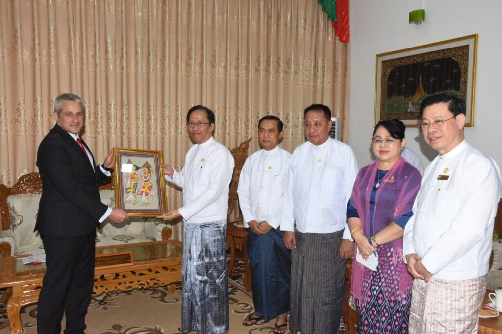 ကျန်းမာရေးဝန်ကြီးဌာန၊ ပြည်ထောင်စုဝန်ကြီးဒေါက်တာသက်ခိုင်ဝင်းမှ ဗီယက်နမ်နိုင်ငံ၊ဟနွိုင်းမြို့အခြေစိုက်၊ ဘယ်လာရုစ်နိုင်ငံသံရုံးမှ သံအမတ်ကြီး မစ္စတာ အူလာဇမီယာ ဘာရာဗီကူ ခေါင်းဆောင်သောကိုယ်စားလှယ်အဖွဲ့အား လက်ခံတွေ့ဆုံ
