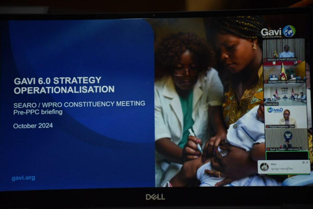 ကျန်းမာရေးဝန်ကြီးဌာန၊ ပြည်ထောင်စုဝန်ကြီး ဒေါက်တာသက်ခိုင်ဝင်း VIDEO CONFERENCING စနစ်ဖြင့် ကျင်းပပြုလုပ်သည့် GAVI SEARO WPRO CONSTITUENCY MEETING အား တက်ရောက်၍ ဆွေးနွေးပြောကြားခြင်း