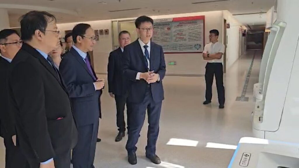| ထို့နောက် တက်ရောက်လာသည့် ကျန်းမာရေးဝန်ကြီးများ၊ ဒုတိယဝန်ကြီးများနှင့် ဧည့်သည်တော်များက နန်နင်းမြို့ ကွမ်ရှီးတက္ကသိုလ် ဆေးရုံရှိ China-ASEAN Healthcare Cooperation Center အား ဒီဂျစ်တယ်စက်ခလုပ်နှိပ်၍ ဖွင့်လှစ်ပေးခဲ့ပြီး အဆိုပါဆေးရုံရှိ တရုတ်-အာဆီယံ အထူးဆေးကုသဆောင်သို့ သွားရောက် လေ့လာကြသည်။ | |