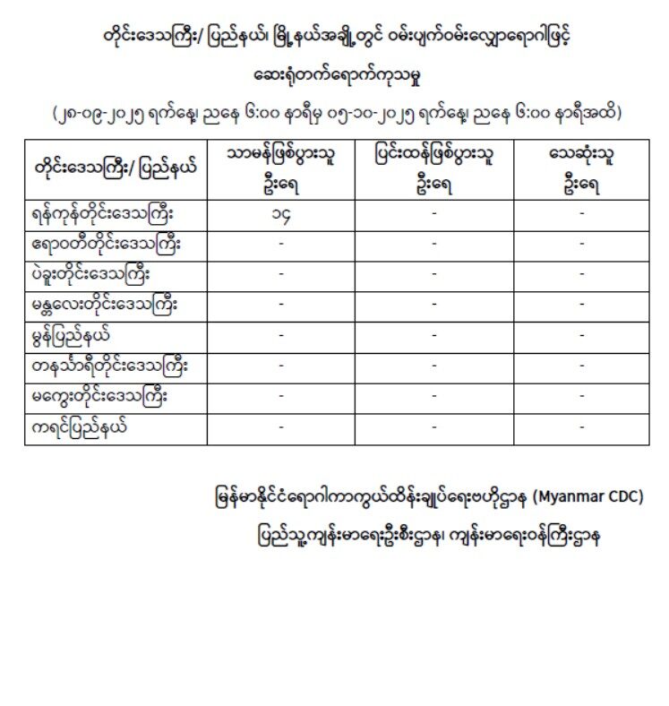 COVID-19 ရောဂါ စောင့်ကြပ်ကြည့်ရှုမှုနှင့်ပတ်သက်၍ အပတ်စဉ်သတင်းထုတ်ပြန်ချက် (၇-၁၀-၂၀၂၅)ရက်နေ့၊ နံနက် (၈:၀၀)နာရီ