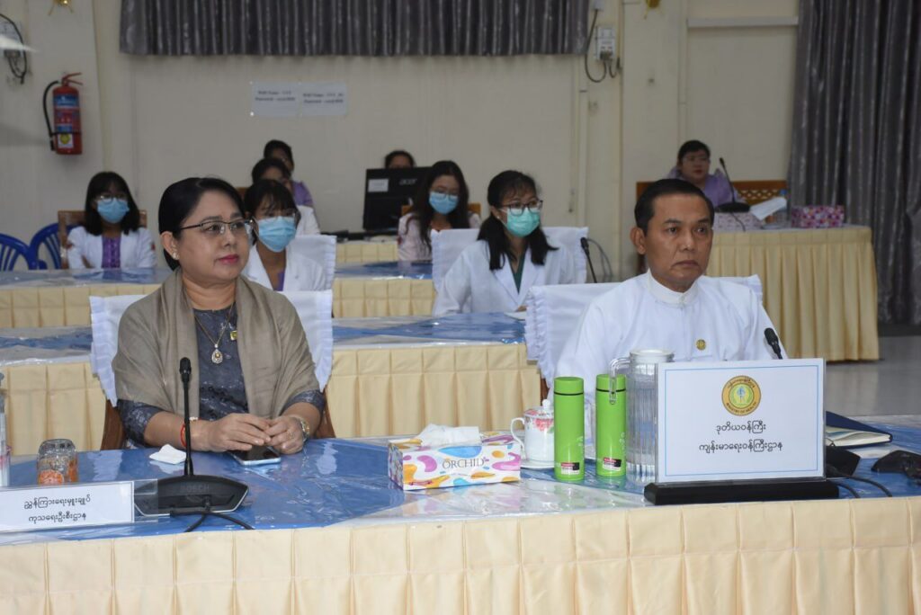 ဆေးတက္ကသိုလ်များ၏ အလုပ်သင်ဆရာဝန်လေ့ကျင့်သင်ကြားရေးဆေးရုံကြီးများတွင် အောက်တိုဘာ ၁ ရက်မှ စတင်ပြီး အလုပ်သင်ဆရာဝန်များအဖြစ် တာဝန်ထမ်းဆောင်နေသူ မောင်မယ်သစ်လွင် အလုပ်သင်ဆရာဝန်များကို ကြိုဆိုပွဲအား ယနေ့နံနက်ပိုင်းက နေပြည်တော်ရှိ ကျန်းမာရေးဝန်ကြီးဌာန၌ Semi-virtual စနစ်ဖြင့် ကျင်းပသည်။ |