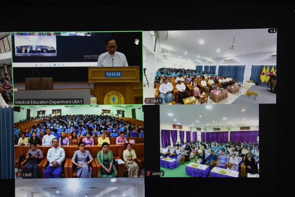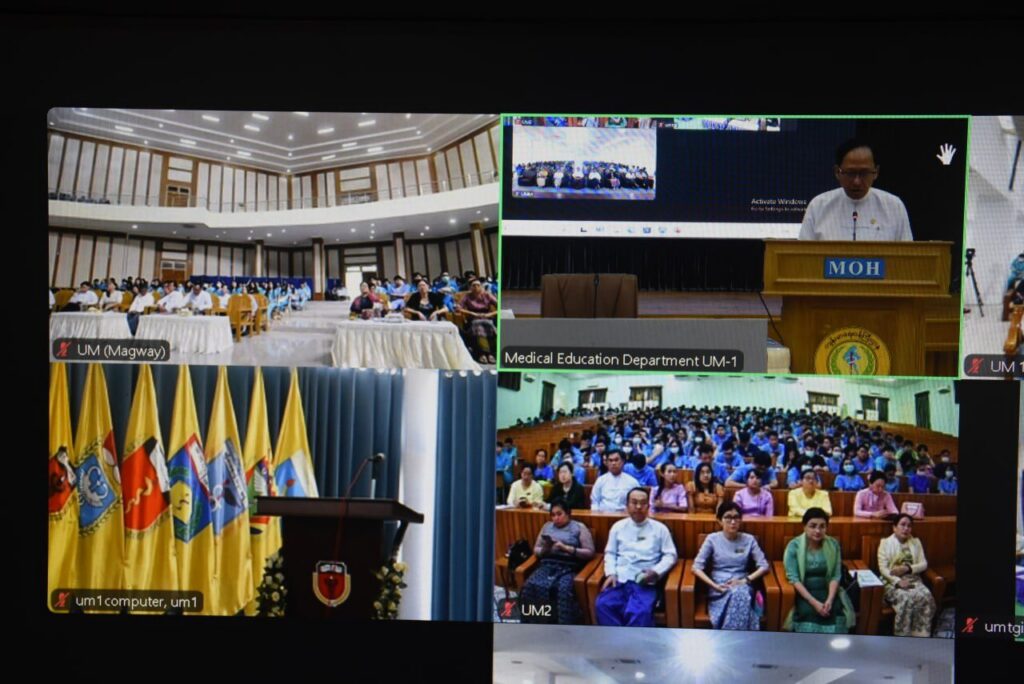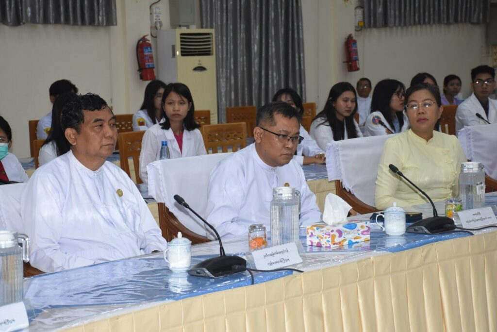 | ထို့အတူ ကြိုဆိုပွဲသို့ အလုပ်သင်ဆရာဝန်များက Virtual စနစ်ဖြင့် ဆေးတက္ကသိုလ်(၁) ရန်ကုန်မှ အလုပ်သင်ဆရာဝန် ၃၀၂ ဦး၊ ဆေးတက္ကသိုလ် မန္တလေးမှအလုပ်သင်ဆရာဝန် ၂၈၁ ဦး၊ ဆေးတက္ကသိုလ် (၂) ရန်ကုန်မှ ၃၃၄ ဦး၊ ဆေးတက္ကသိုလ် မကွေးမှ ၁၆၆ ဦး၊ ဆေးတက္ကသိုလ် တောင်ကြီးမှ ၁၀၄ ဦး တက်ရောက်ကြပြီး Inperson စနစ်ဖြင့် နေပြည်တော် ပြည်သူ့ဆေးရုံကြီး ခုတင်(၁၀၀၀)မှ ၅၃ ဦး စုစုပေါင်း ၁၂၄၀ ဦးတို့ တက်ရောက်ခဲ့ကြပါသည်။ | |