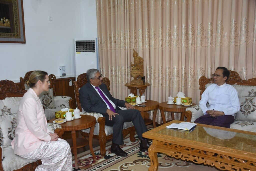 ကျန်းမာရေးဝန်ကြီးဌာန၊ ပြည်ထောင်စုဝန်ကြီးဒေါက်တာသက်ခိုင်ဝင်း ဘန်ကောက်မြို့အခြေစိုက် ကုလသမဂ္ဂစီမံကိန်းဝန်ဆောင်မှုရုံး (UNOPS)၏ အာရှဒေသဆိုင်ရာရုံး၊ ညွှန်ကြားရေးမှူး Mr. Sanjay Mathur အား လက်ခံတွေ့ဆုံ