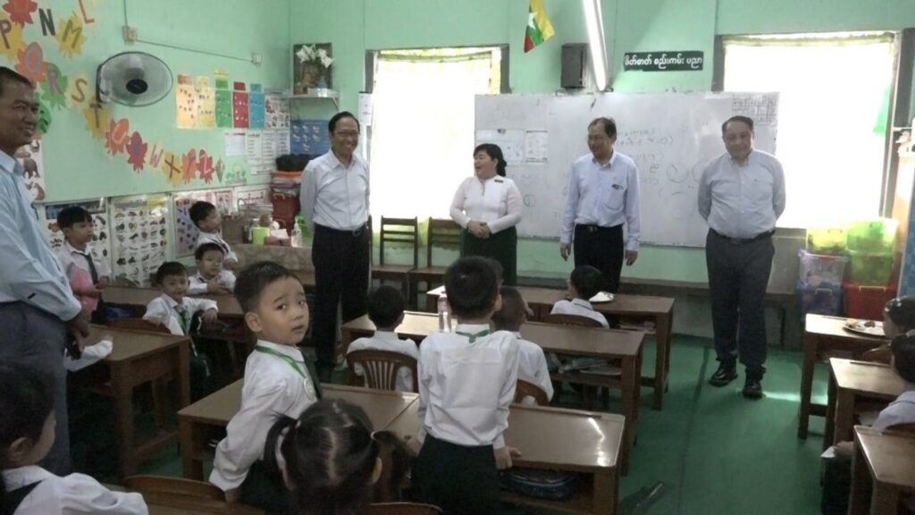 ကျန်းမာရေးဝန်ကြီးဌာန ပြည်ထောင်စုဝန်ကြီး ပါမောက္ခဒေါက်တာသက်ခိုင်ဝင်း ရန်ကုန်တိုင်း ဒေသကြီး၊ မရမ်းကုန်းမြို့နယ်၊ လှိုင်မြို့နယ်နှင့် ဒဂုံမြို့နယ် တို့၌ ကျောင်းတွင်း အာဟာရ ကျွေးမွေးခြင်းလုပ်ငန်းများ ဆောင်ရွက်မှု လှည့်လည်ကြည့်ရှုအားပေး