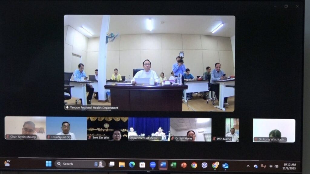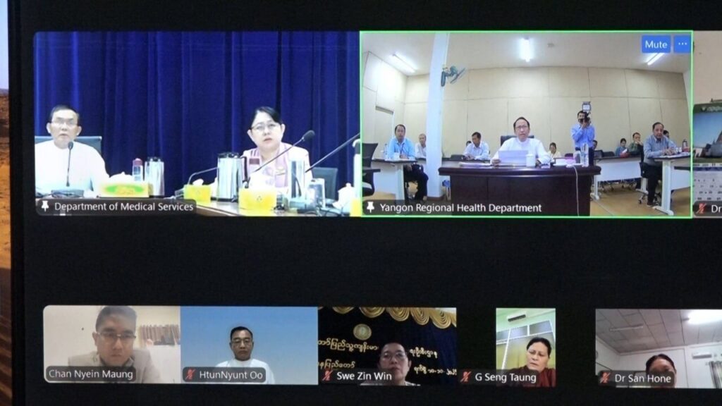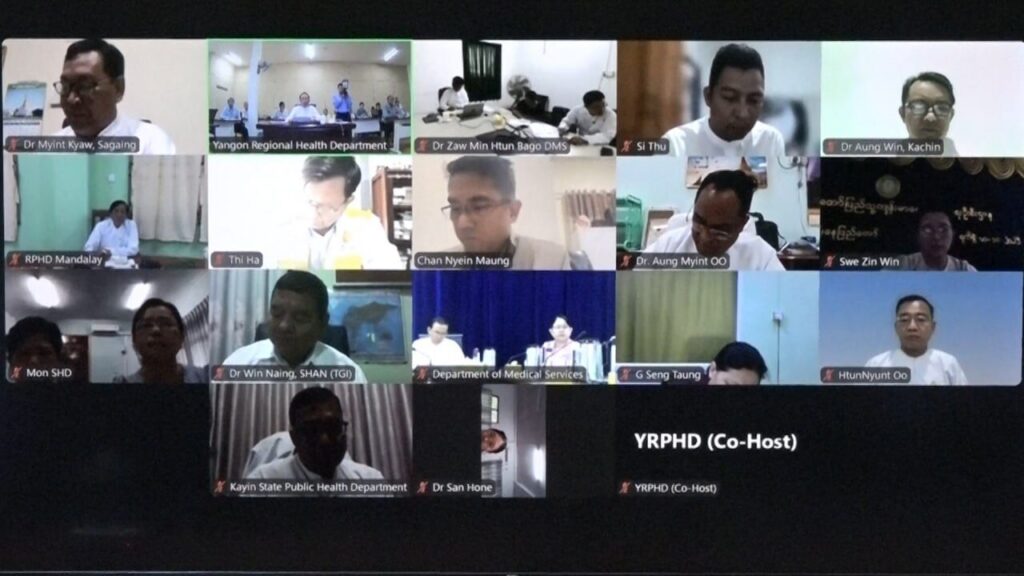 ကျန်းမာရေးဝန်ကြီးဌာန၊ ပြည်ထောင်စုဝန်ကြီး ပါမောက္ခဒေါက်တာသက်ခိုင်ဝင်း တိုင်းဒေသကြီး/ ပြည်နယ်များမှ ပြည်သူ့ကျန်းမာရေးနှင့် ကုသရေးဦးစီးဌာနမှူးများနှင့် Virtual စနစ်ဖြင့်တွေ့ဆုံ