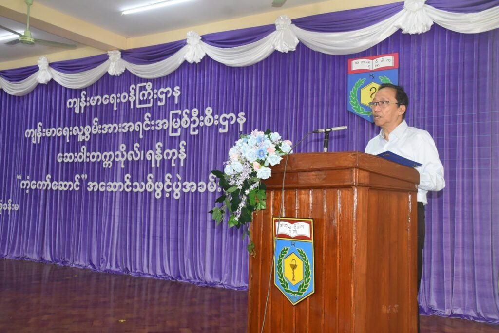 ကျန်းမာရေးဝန်ကြီးဌာန၊ ပြည်ထောင်စုဝန်ကြီး၊ ပါမောက္ခဒေါက်တာသက်ခိုင်ဝင်း၊ ဆေးဝါးတက္ကသိုလ်-ရန်ကုန် “ကံ့ကော်ဆောင်” အဆောက်အဦ ဖွင့်ပွဲ အခမ်းအနားသို့တက်ရောက်