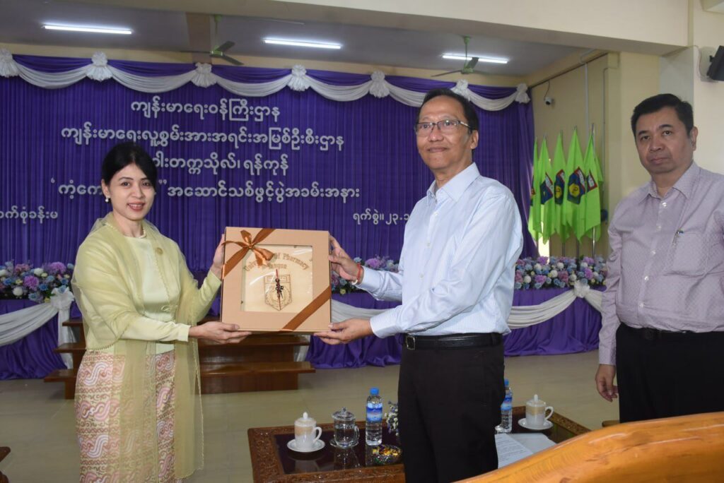 | ယင်းနောက်ဆေးဝါးတက္ကသိုလ်-ရန်ကုန် ပါမောက္ခချုပ်က ကျေးဇူးတင်စကား ပြောကြားကာ ဖွင့်ပွဲ အထိမ်းအမှတ် လက်ဆောင်များပေးအပ်ခဲ့ပြီး ကျန်းမာရေးလူ့စွမ်းအားအရင်းအမြစ်ဦးစီးဌာန ညွှန်ကြားရေး မှူးချုပ်ထံသို့ အဆောက်အဦဦးစီးဌာန အဆောက်အဦ အထူးအဖွဲ့(၂)မှ တာဝန်ရှိသူမှ အဆောက်အဦဆိုင်ရာ မှတ်တမ်းများ လွှဲပြောင်းပေးအပ်ခဲ့ပါသည်။