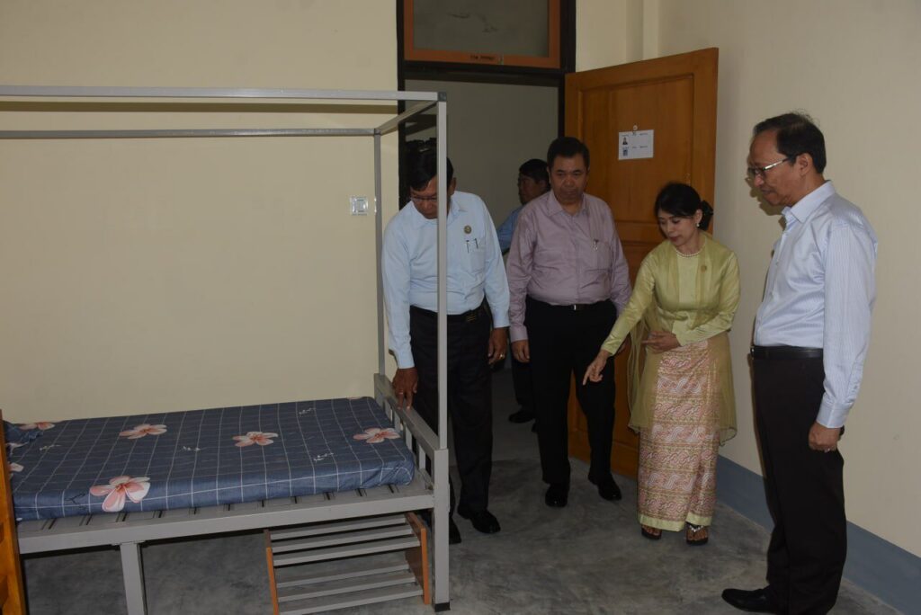 ယနေ့ဖွင့်လှစ်ပေးနိုင်ခဲ့သည့် “ကံ့ကော်ဆောင်”သည် ၂၀၂၄-၂၀၂၅ ဘဏ္ဍာရေးနှစ်တွင် စတင်ခဲ့ပြီး တန်ဖိုးငွေ ကျပ်သန်း (၁၈၃၆.၀၀၀)ဖြစ်ပြီး ကျောင်းသူ (၁၁၀)ဦးဆံ့ နေထိုင်နိုင်သည့် အကျယ်စတုရန်းပေ (၂၁၆၀၀)ရှိ လေးထပ်ဆောင်ဖြစ်ပါသည်။ |