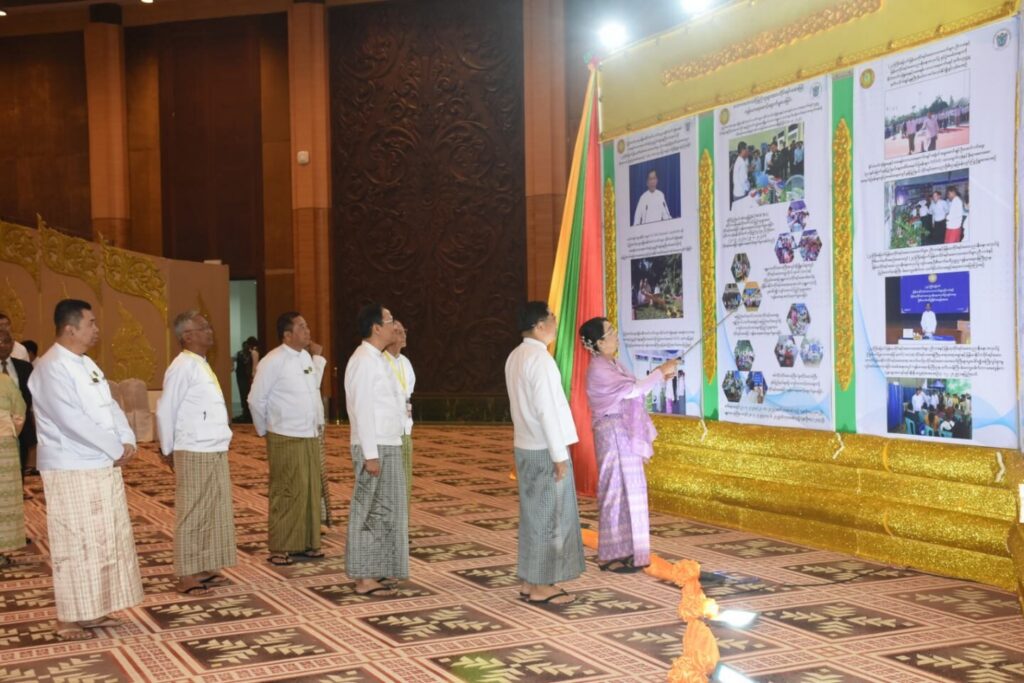 | ယင်းနောက် တိုင်းရင်းဆေးပညာဖွံ့ဖြိုးတိုးတက်ရေး ဆောင်ရွက်မှုများ မှတ်တမ်း Vedio Clipနှင့် “ပြည်ထောင်စုရဲ့အင်အား” တေးသီချင်းဖြင့် ကပြ ဖျော်ဖြေတင်ဆက်မှုကို ကြည့်ရှုကြသည်။