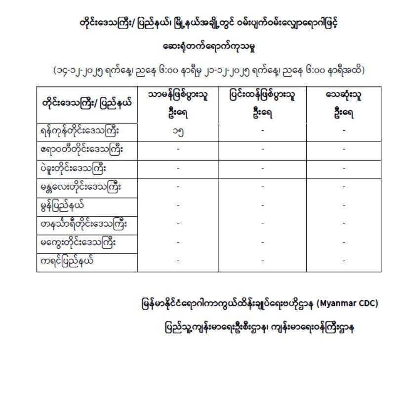 COVID-19 ရောဂါ စောင့်ကြပ်ကြည့်ရှုမှုနှင့်ပတ်သက်၍ အပတ်စဉ်သတင်းထုတ်ပြန်ချက် (၂၃-၁၂-၂၀၂၅)ရက်နေ့၊ နံနက် (၈:၀၀)နာရီ