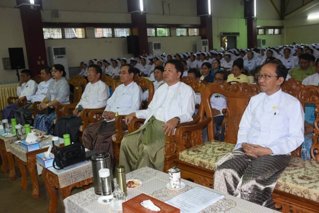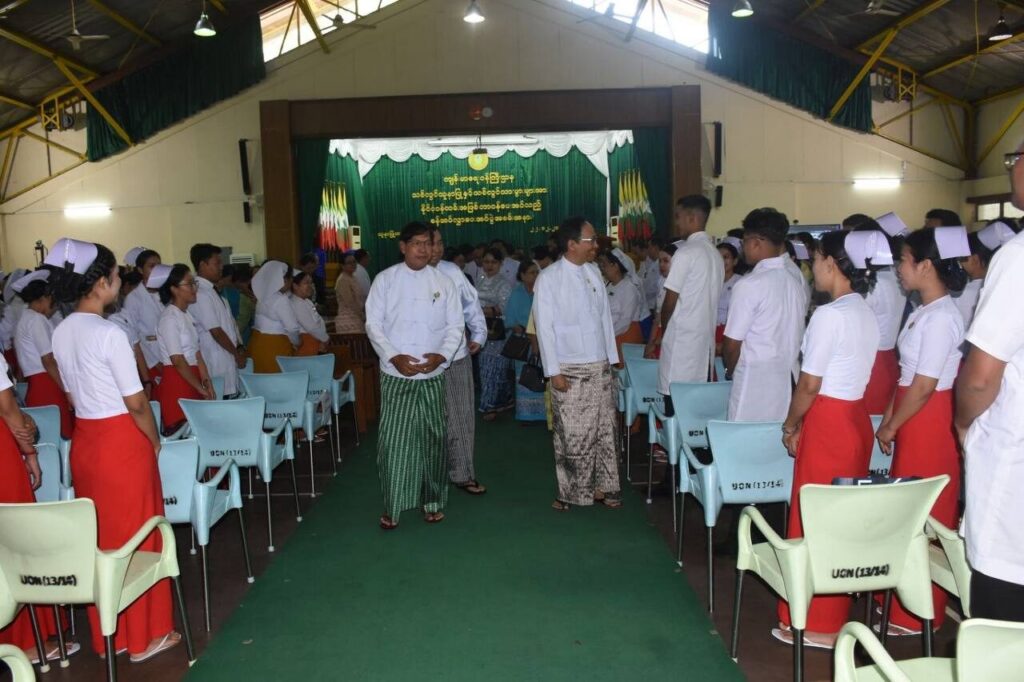 | ဦးစွာ ပြည်ထောင်စုဝန်ကြီးက ပြည်သူလူထုကို ကျန်းမာရေး စောင့်ရှောက်မှုပေးရာတွင် အရည်အသွေးရော အရည်အချင်းပါ ပြည့်ဝရုံမျှမက မိမိတို့သူနာပြု၊ သားဖွားများလိုက်နာရမည့် အသက်မွေးဝမ်းကျောင်းဆိုင်ရာ ကျင့်ဝတ်များကို လိုက်နာကျင့်ကြံ ကြစေလိုကြောင်း၊ အခြေခံသူနာပြုစုမှုနှင့် သားဖွားအတတ်ပညာများကို အသုံးပြု၍ ပြည်သူများကို ကျွမ်းကျင်ပိုင်နိုင်စွာဖြင့် ပြုစုပေးနိုင်သော မှန်ကန်သော ခံယူချက်ရှိသည့် သူနာပြု၊ သားဖွားကောင်းများ ဖြစ်ကြစေလိုကြောင်းနှင့် ပြည်သူလူထုနှင့်ဆက်ဆံရာတွင် ဖော်ရွေစွာပြောဆိုဆက်ဆံကြစေလိုကြောင်း ပြောကြားသည်။