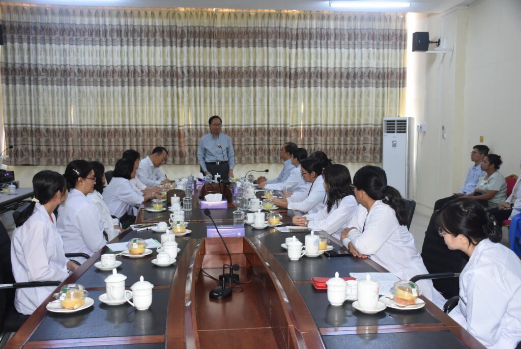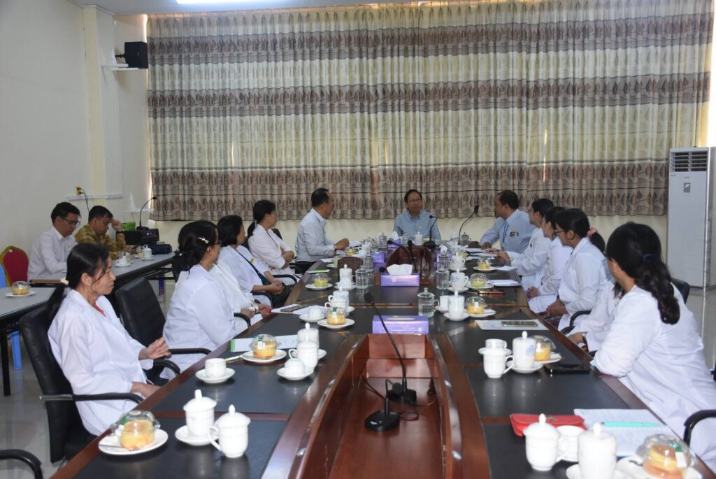 | ထို့နောက် ဆေးရုံကြီး၏ အစည်းအဝေးခန်းမ၌ ဆေးရုံအုပ်ကြီး၊ ပါမောက္ခ/ အထူးကု ဆရာဝန်ကြီးများ၊ သူနာပြုကြီးများ၊ ကျန်းမာရေးဝန်ထမ်းများနှင့်တွေ့ဆုံ၍ ပြည်ထောင်စုဝန်ကြီးက ဗဟိုအမျိုးသမီးဆေးရုံကြီး(ရန်ကုန်)သည် ကိုယ်ဝန်ဆောင်မိခင်များ၊ အမျိုးသမီးရောဂါများအတွက် မြန်မာနိုင်ငံတွင် အကြီးဆုံးကုသရေးဌာနဖြစ်ရာ ကျန်းမာရေး စောင့်ရှောက်မှုများ အရည်အသွေးကောင်းမွန်စေရေး၊ ဆေးရုံဝန်ဆောင်မှု လုပ်ငန်းများ ပိုမိုတိုးတက် စေရေးအတွက် စဉ်ဆက်မပြတ်ကြိုးပမ်းဆောင်ရွက်သွားကြရန် လိုပါကြောင်း၊ သင်ကြားရေး ဆေးရုံကြီးလည်းဖြစ်သည့်အတွက် မျိုးဆက်သစ်သားဖွားမီးယပ်အထူးကုဆရာဝန်များ၊ လက်ထောက် ဆရာဝန်များ ကုသမှုအရည်အသွေးကောင်းမွန်စေရေး လေ့ကျင့်မွေးထုတ်မှုသာမက ရန်ကုန်တိုင်း ဒေသကြီးအတွင်းရှိ မြို့နယ်နှင့်တိုက်နယ်ဆေးရုံများ၌ မိခင်ကလေးကျန်းမာရေးစောင့်ရှောက်မှု ဆိုင်ရာ ကုသမှုအရည်အသွေး ပိုမိုကောင်းမွန်စေရေးအတွက်လည်း လိုအပ်သည်များ အကြံပြု သင်ကြား ဆောင်ရွက်ပေးကြစေလိုကြောင်း၊ နိုင်ငံတော်အကြီးအကဲ၏လမ်းညွှန်ချက်နှင့်အညီ သူနာပြုသင်တန်းကျောင်းများကို သူနာပြုသိပ္ပံများအဖြစ်ပြောင်းလဲဖွင့်နိုင်ရေးနှင့် သူနာပြုများ၏ ရာထူးတိုးမြှင့်ရေးကိစ္စများကိုလည်း ဆောင်ရွက်ပေးလျက်ရှိပါကြောင်း၊ သားသမီးမရသည့် ဇနီးမောင်နှံများအတွက် သားသမီးရရှိစေရေး ခေတ်မီနည်းပညာများ အသုံးပြုကာ စစ်ဆေးဆောင်ရွက်ပေးနေသည့် Fertility Centre ကိုလည်း ယခုထက် ပိုမိုတိုးတက်စေရေး ကြိုးပမ်း ဆောင်ရွက်ကြရန်ဖြစ်ပြီး လိုအပ်ချက်များကို ပံ့ပိုးပေးမည်ဖြစ်ကြောင်း၊ ဆေးရုံကြီး ဥပဓိရုပ် ကောင်းမွန်စေရေးအတွက် ဆေးရုံဝန်ထမ်းအားလုံး ပူးပေါင်းဆောင်ရွက်ရန် လိုအပ်ပြီး ပြင်ဆင်မွမ်းမံ မှုများ ဆောင်ရွက်ရာတွင် ရှေးဟောင်း အဆောက်အဦ ဖြစ်သည်နှင့်အညီ မူလအဆောက်အဦ၏ မူဟန်မပျက် ပြုပြင်ဆောင်ရွက်နိုင်ရေး သက်ဆိုင်ရာ ပညာရှင်များနှင့် ညှိနှိုင်းတိုင်ပင်ဆောင်ရွက်ရန် ဖြစ်ပါကြောင်း၊ နိုင်ငံတော်က ပံ့ပိုးပေးလျက်ရှိသည့် ထောက်ပံ့မှုများကို လူနာများအကျိုးရှိစွာ ခံစားရရှိစေရေး အားလုံးပူးပေါင်းဆောင်ရွက်ကြရန် မှာကြားသည်။ | |