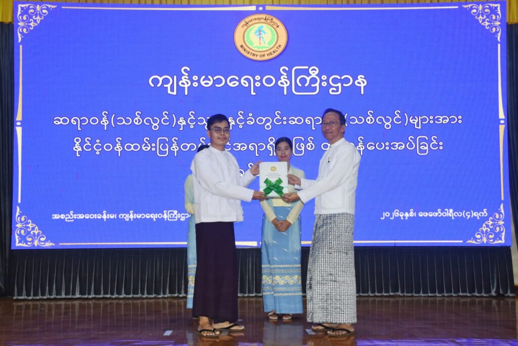 ကျန်းမာရေးဝန်ကြီးဌာန၊ ဆရာဝန်(သစ်လွင်)နှင့် သွားနှင့်ခံတွင်းဆရာဝန်(သစ်လွင်)များအား နိုင်ငံ့ဝန်ထမ်းပြန်တမ်းဝင်အရာရှိအဖြစ် တာဝန်ပေးအပ်ခြင်းအခမ်းအနားကျင်းပ