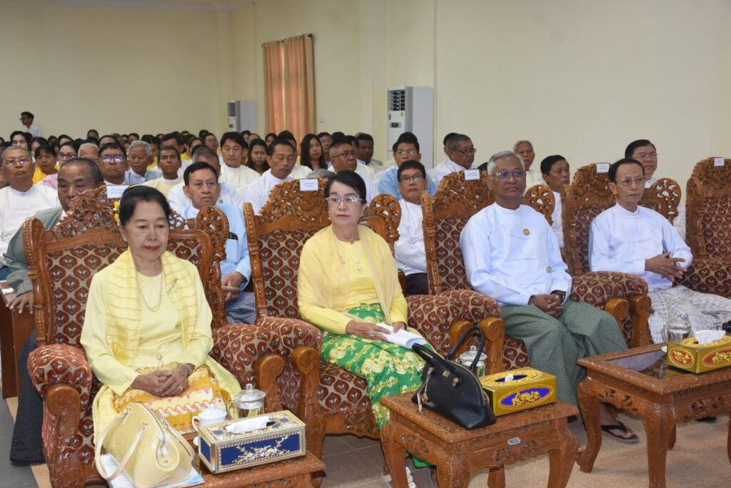 | အခမ်းအနားတွင် သဘာပတိအဖြစ် ကျန်းမာရေးဝန်ကြီးဌာန ပြည်ထောင်စုဝန်ကြီး ပါမောက္ခဒေါက်တာသက်ခိုင်ဝင်းက ဆောင်ရွက်ပြီး အခမ်းအနားကို နဝရတ် ကတိသစ္စာ သံပြိုင်ရွတ်ဆို၍ ဖွင့်လှစ်သည်။ | |