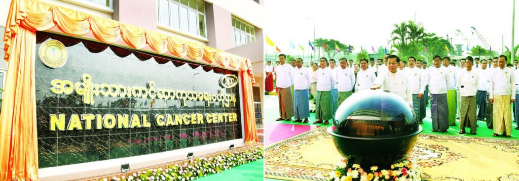 ပြည်ထောင်စုသမ္မတမြန်မာနိုင်ငံတော် ယာယီသမ္မတ နိုင်ငံတော်လုံခြုံရေးနှင့်အေးချမ်းသာယာရေးကော်မရှင်ဥက္ကဋ္ဌ ဗိုလ်ချုပ်မှူးကြီး မင်းအောင်လှိုင် အမျိုးသားကင်ဆာကုသရေးဗဟိုဌာန (National Cancer Center – NCC) ဖွင့်ပွဲအခမ်းအနားသို့ တက်ရောက်ချီးမြှင့်