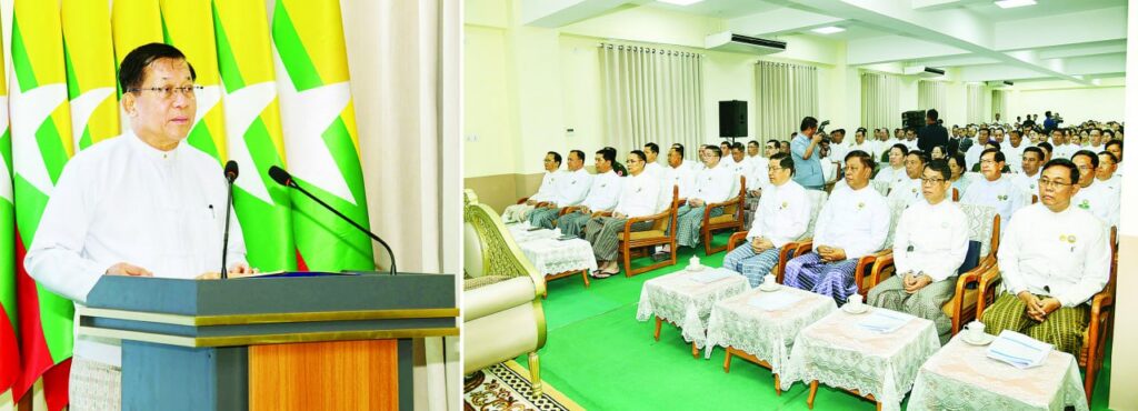 မိမိတို့ တာဝန်ယူခဲ့သည့် (၅)နှစ်တာကာလအတွင်း ကျန်းမာရေးကဏ္ဍတွင် ကြီးမားသည့် စိန်ခေါ်မှုများစွာကို ရင်ဆိုင်ခဲ့ရသော်လည်း အောင်မြင်စွာဖြတ်သန်းနိုင်ခဲ့ကြသည်ကို အားလုံးအသိပင်ဖြစ်ကြောင်း၊ ပထမတစ်နှစ် အတွင်းတွင် တစ်ကမ္ဘာလုံးရင်ဆိုင်ခဲ့ရသည့် ကိုဗစ်-၁၉ ရောဂါဆိုးကြီးကို “လူ့အသက်ထက်အရေးကြီးတာ ဘာမှမရှိ” ဆိုသည့် မူဝါဒဖြင့် အစိုးရ၊ ဝန်ထမ်းများနှင့် ပြည်သူများစုပေါင်းအားဖြင့် အောင်မြင်စွာ ကျော်ဖြတ်နိုင်ခဲ့ကြကြောင်း၊ ထို့အပြင် ၂၀၂၃ ခုနှစ် မိုခါမုန်တိုင်း၊ ၂၀၂၄ ခုနှစ် ရာဂီမုန်တိုင်းနှင့် ၂၀၂၅ ခုနှစ် မန္တလေးငလျင် စသည့်သဘာဝဘေးအန္တရာယ်များ ကြုံတွေ့ခဲ့ရချိန်တွင်လည်း ကျန်းမာရေးဝန်ထမ်းများသည် ကိုယ်ကျိုးစွန့်အနစ်နာခံပြီး တက်ညီလက်ညီဖြင့် ကျန်းမာရေးစောင့်ရှောက်မှုလုပ်ငန်းများကို ကြိုးပမ်းလုပ်ဆောင်ခဲ့ကြသည်ကို တွေ့မြင်ရမည်ဖြစ်ကြောင်း၊ ထိုကြောင့်လည်း အခက်အခဲများကြားက အောင်မြင်အောင်ဆောင်ရွက်နိုင်ခဲ့ပြီး နောက်ဆက်တွဲကျန်းမာရေး ပြဿနာများဖြစ်ပွားခြင်းမရှိခဲ့သဖြင့် ပြန်လည်ထူထောင်ရေးလုပ်ငန်းများကိုလည်း ထိရောက်လျင်မြန်စွာ ဆောင်ရွက်နိုင်ခဲ့ခြင်းဖြစ်ကြောင်း၊ ကျန်းမာရေးကဏ္ဍ အခြေခံအဆောက်အအုံများ ဖြည့်ဆည်းမှုအနေဖြင့်လည်း (၅)နှစ်အတွင်း ပြည်သူ့ဆေးရုံပေါင်း ၂၅ ရုံကို အဆင့်မြှင့်တင်ပေးနိုင်ခဲ့ပြီး မြို့ပြနှင့် ကျေးလက်ကျန်းမာရေးစောင့်ရှောက်မှု ကွာဟချက်မရှိစေရန်၊ တန်းတူညီမျှရရှိစေရန်အတွက် ကျေးလက်ဒေသများတွင် (၁၆) ခုတင်ဆံ့ ဆေးရုံ ၁၂ ရုံကို အသစ်တိုးချဲ့ဖွင့်လှစ်ပေးနိုင်ခဲ့ကြောင်း၊ ဆေးရုံများတွင် ရှိသင့်ရှိထိုက်သည့် အရည်အသွေးမြင့် အဆောက်အအုံကောင်းများကို တည်ဆောက်ပေးခဲ့ရာတွင် (၅)နှစ်အတွင်း ဆေးရုံအဆောက်အအုံသစ် ၄၁ ခုနှင့် ဝန်ထမ်းအိမ်ရာများကိုလည်း တည်ဆောက်ပေးနိုင်ခဲ့ကြောင်း၊ ကျန်းမာရေးကဏ္ဍအဆင့် မြှင့်တင်ရာတွင် စဉ်ဆက်မပြတ်ဖွံ့ဖြိုးတိုးတက်မှုပန်းတိုင်များ (Sustainable Development Goals – SDG) ၏ ပန်းတိုင်(၃)ဖြစ်သည့် ကျွမ်းကျင်သောကျန်းမာရေး လူ့စွမ်းအားအရင်းအမြစ်များ ရေရှည်ဖွံဖြိုးတိုးတက်စေရေး ဆိုသည့်ပန်းတိုင်ကို ပြည့်မီစေရန် အလေးထားဆောင်ရွက်ပေးလျက်ရှိနေကြောင်း၊ “ဆေးရုံရှိလျှင် ဆရာဝန်ရှိရမည်” ဆိုသည့် မူဝါဒချမှတ်ပြီး (၅)နှစ်တာကာလအတွင်း ပြည်သူ့ဆေးရုံတိုင်းအတွက် သစ်လွင်ဆရာဝန် ၂၆၄၉ ဦးအပါအဝင် သွားနှင့်ခံတွင်း ဆရာဝန်များ၊ သူနာပြုများ၊ ဆေးဘက်ကျွမ်းကျင်ဝန်ထမ်းများနှင့် ပြည်သူ့ကျန်းမာရေး ဝန်ထမ်းများကိုလည်း ခန့်အပ်ပေးနိုင်ခဲ့ကြောင်း၊ ထို့အပြင် ဝန်ထမ်းများ၏ စွမ်းဆောင်ရည် မြှင့်တင်နိုင်ရန် ပြည်တွင်းပြည်ပ ဘွဲလွန်သင်တန်းများ တက်ရောက်ခွင့်ကို စီစဉ်ဆ